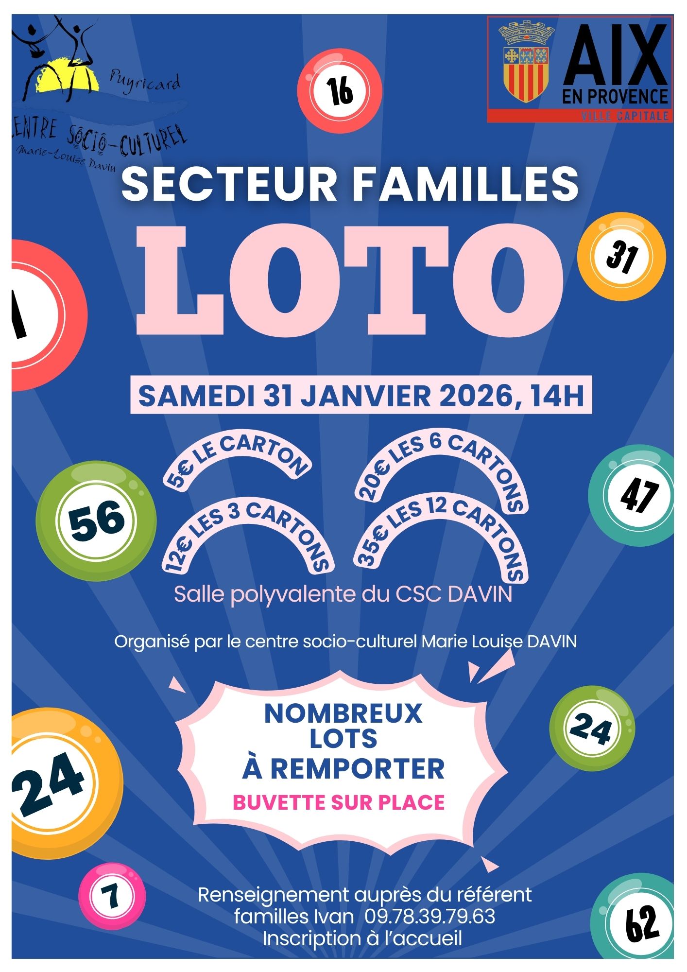 Venez nombreux à notre premier loto organisé dans le cadre du secteur familles le samedi 31/01/2026, 14h